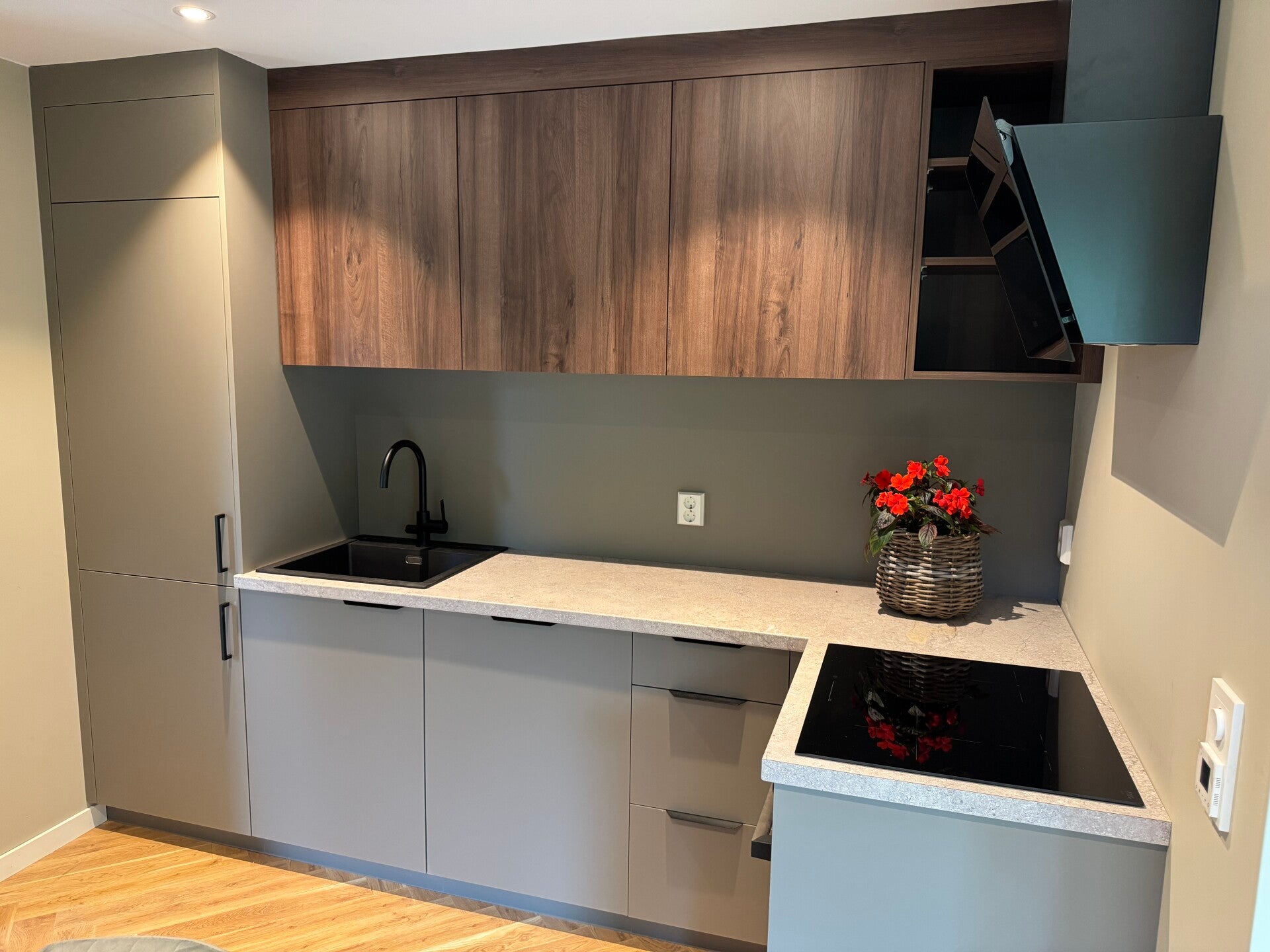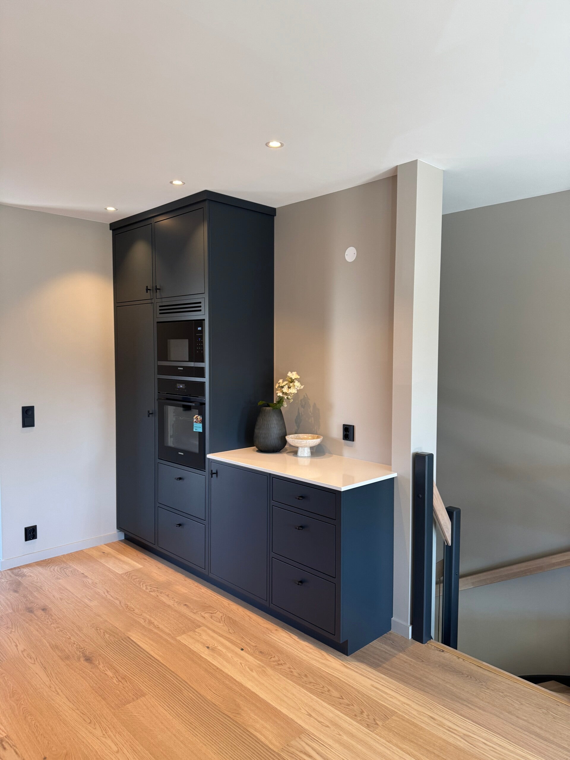 Vi produserer også kjøkken etter mål og andre spesialtilpassede møbler som gir hjemmet et helhetlig og moderne uttrykk.